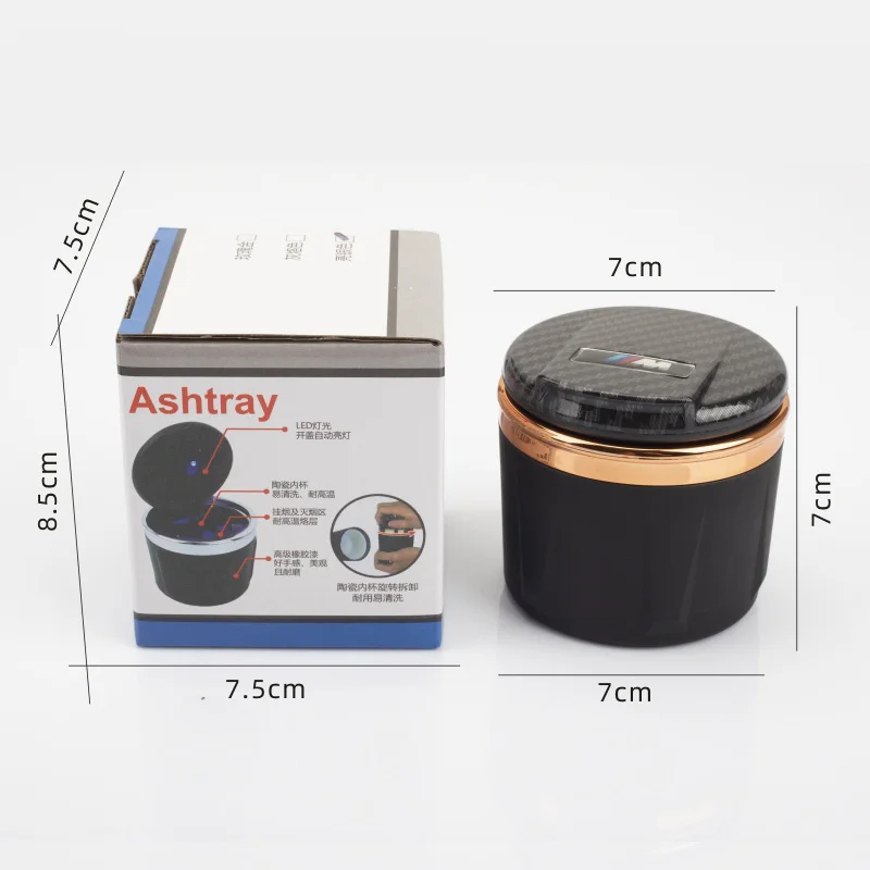 El cenicero LED portátil para el interior del coche es un accesorio práctico y moderno que ofrece una solución conveniente para los fumadores que desean mantener su vehículo limpio y libre de olores desagradables. Este tipo de cenicero no solo es funcional, sino que también añade un toque de elegancia y tecnología a tu coche. A continuación, se presenta una descripción detallada del producto: