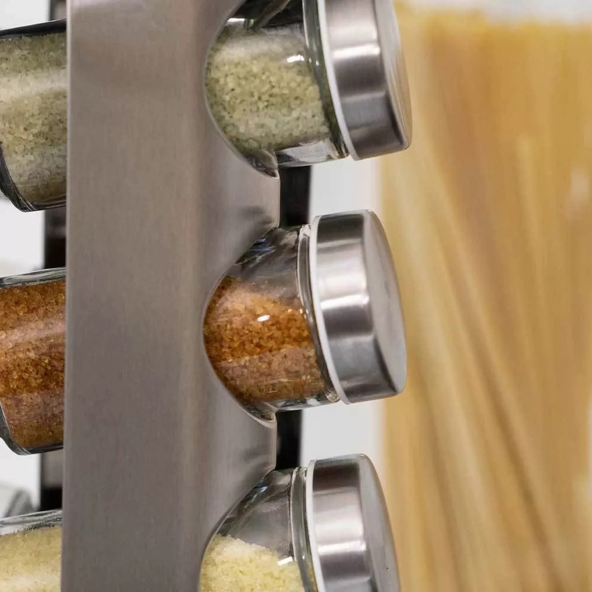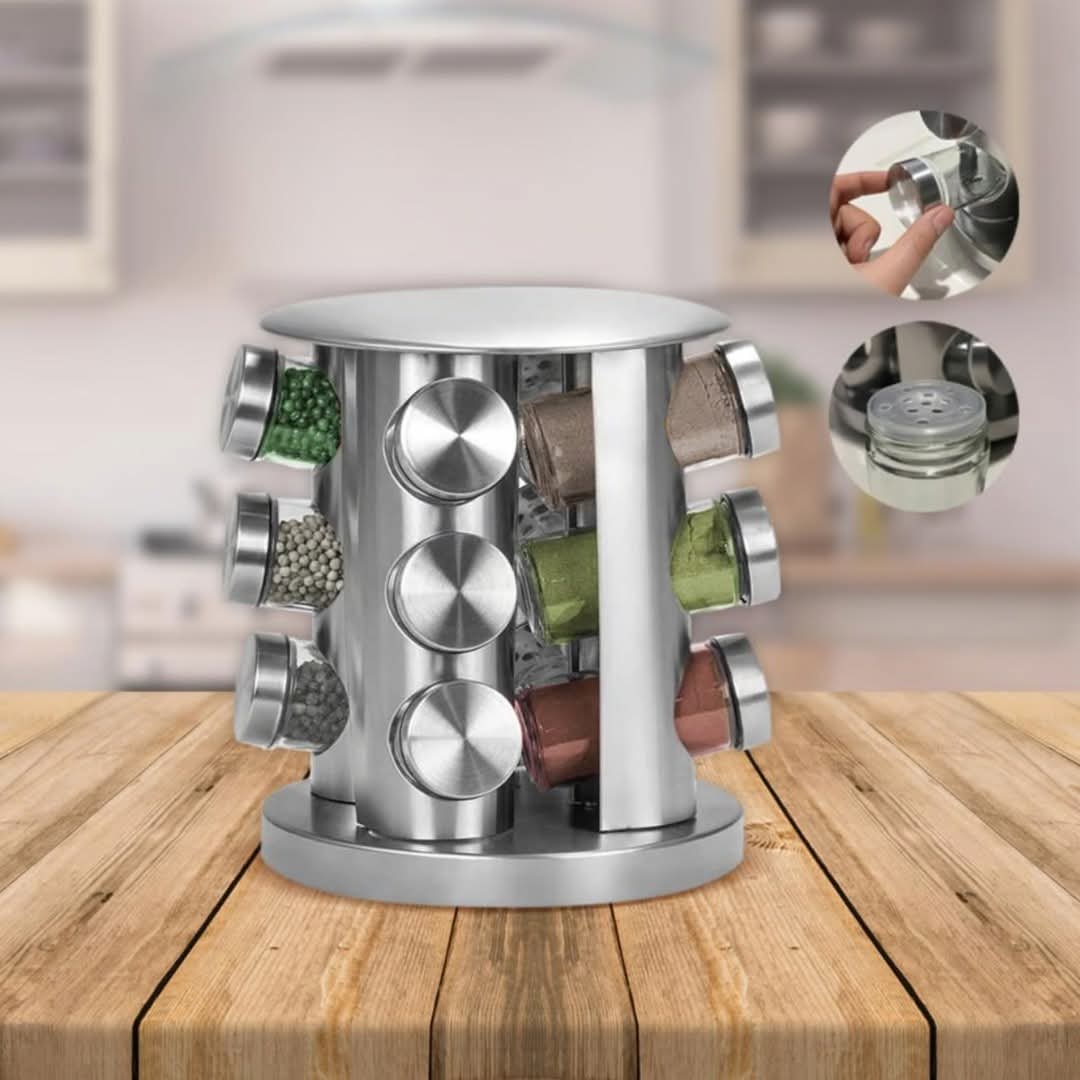 ¡Dale un toque práctico y elegante a tu cocina! Este especiero con base giratoria 360° te permite acceder fácilmente a tus condimentos favoritos, manteniéndolos siempre organizados y al alcance de la mano.