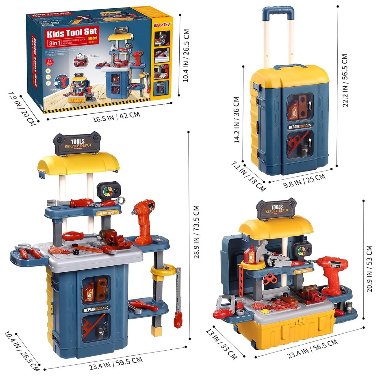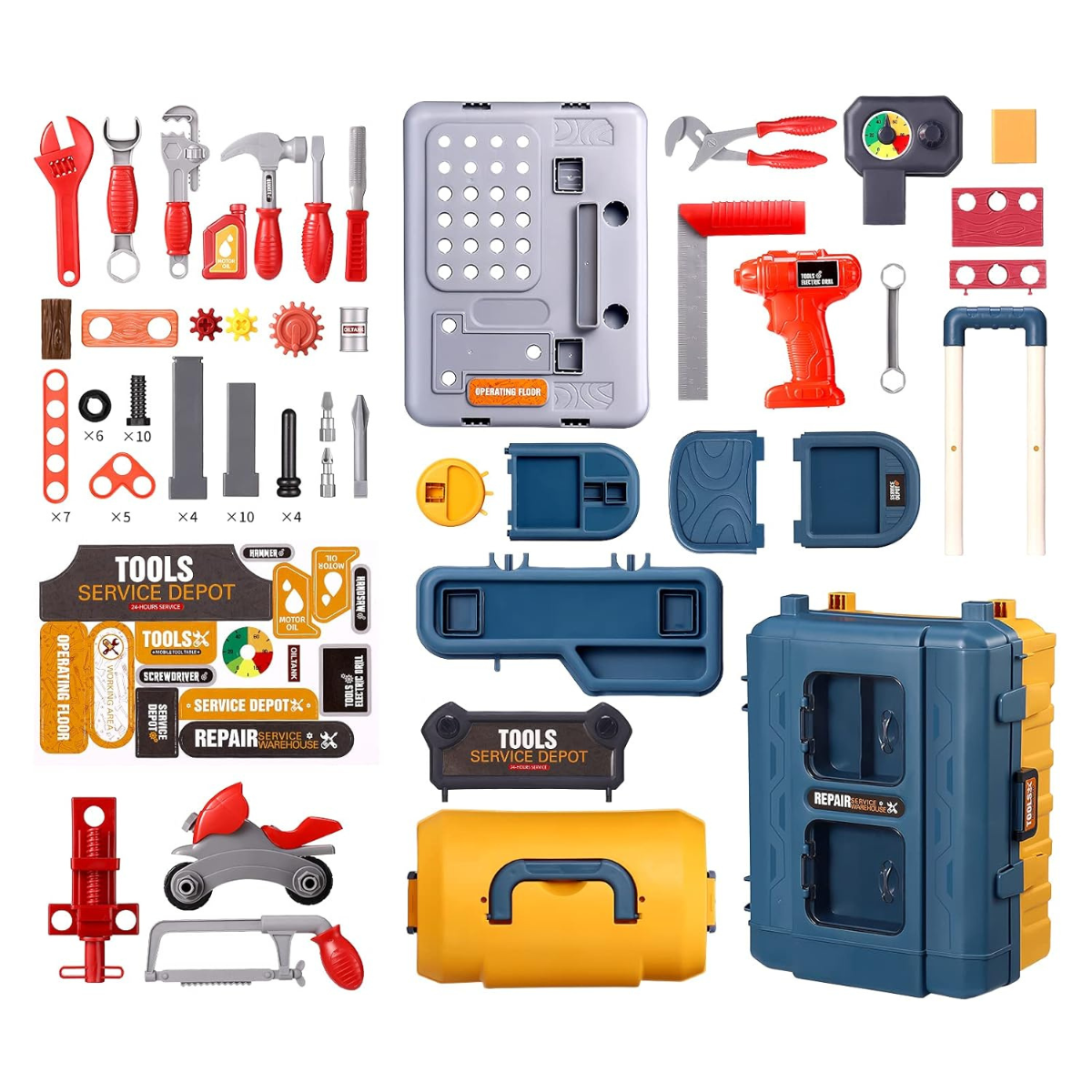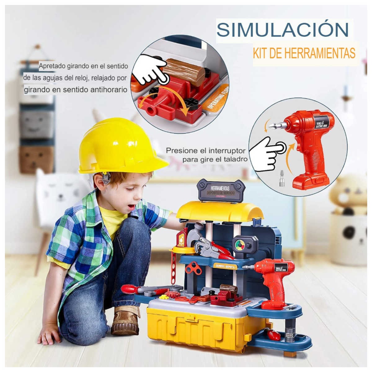 - Herramientas de Juguetes: Equipada con herramientas de juguete seguras, la maleta inspira el juego creativo, fomenta habilidades motoras y cognitivas.