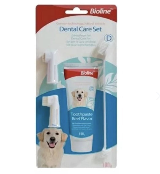 🦷 Set de Cuidado Dental para Perros Sabor Carne – Bio Line 🐾